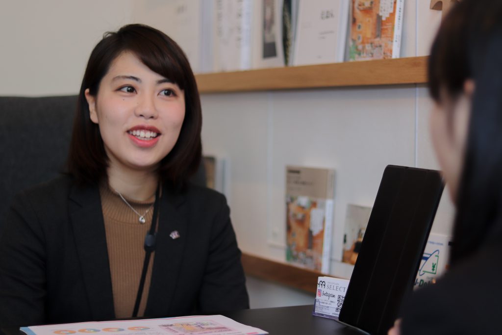 セレクト天神は、三好不動産とグッドルームがコラボしてできたセレクトショップです。だからセレクト天神では、グッドルームがこだわる「無垢材を使ったシンプルだけど温かいお部屋」をコンセプトとして営業しています。現在、高級感などよりも、住みやすさや温かさを重視するお客様が増えているので、これからもっと人気が出てくるのではないかと考えています。また最近、お部屋を探すというより、エリアの雰囲気や住み心地を重視する人が多いので、お客様の雰囲気やイメージを大切にしています。お部屋ももちろんですが、その周りの地域の雰囲気などの希望もお伺いして、「暮らし」という大きな枠で提案するのです。例えば、おしゃれなカフェが好きだという方には、仕事が終わった後に行く事ができるカフェが近くにある、といった情報も一緒に提供するようにしています。