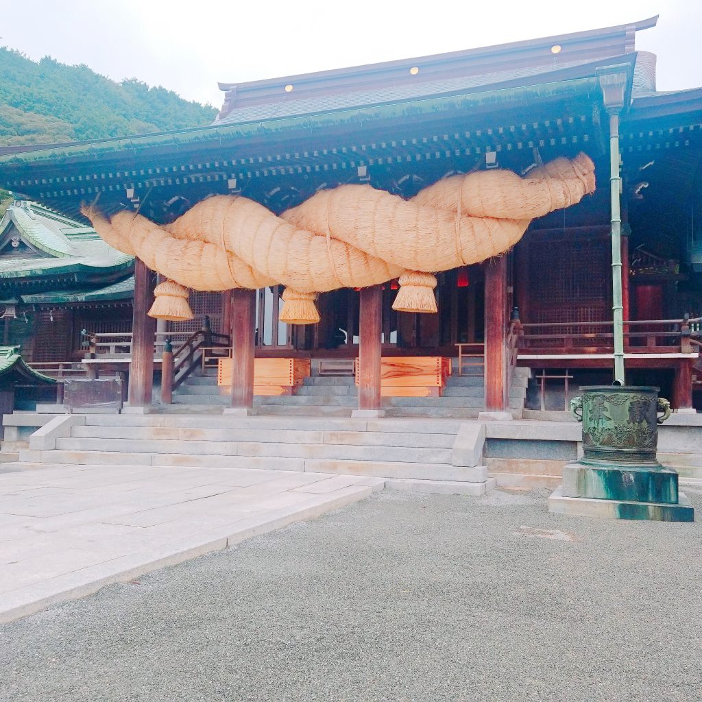 まず訪れたのは、福津の有名スポットの一つ「宮地嶽神社」。中に入ると、目の前には…大きなしめ縄!!!!