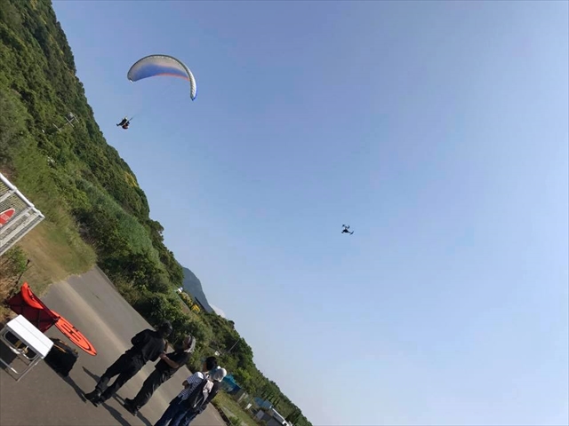 6月18日にJDx droneのキックオフイベントを糸島で開催しました。このイベントタイトルは“鳥の眼で糸島探訪”です。第一会場のアクションパラグライダースクールでは、女子大生がパラグライダーを体験し、鳥の気持ちになって飛んでいる様子をドローンで撮影しました。